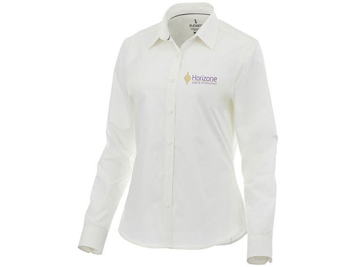 Женская рубашка с длинными рукавами Hamell. манжет на одной пуговице. Атласная окантовка внутренней части горловины. Швы моделирующие фигуру и приталенный крой. Гравированные пуговицы в цвет изделия. Комфортный ярлык-трансфер на изделии. Поплин из 96% хлопка и 4% эластана. 118 г/м².