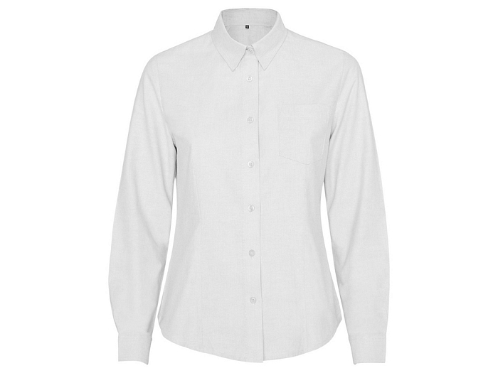 Женская рубашка с длинным рукавом, накладной карман слева. Планка на пуговицах. Отложной воротник на стойке, могут встречаться изделия, где воротник продублирован пуговицами. Манжета регулируется по ширине с помощью 2-х пуговиц. Кокетка на спинке.