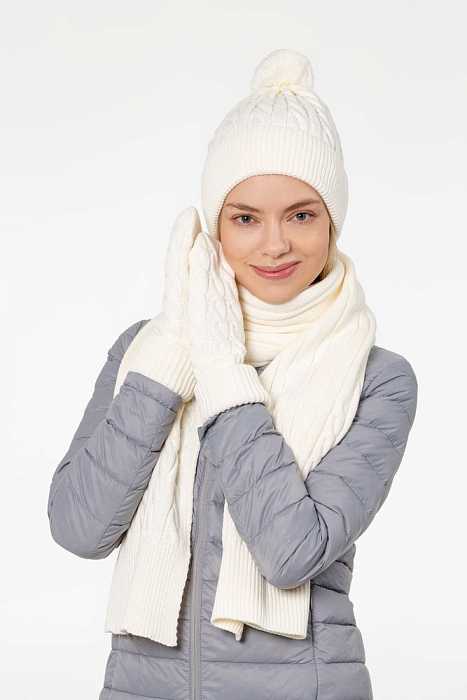 Варежки фактурной вязки с манжетой с подкладом из флиса.