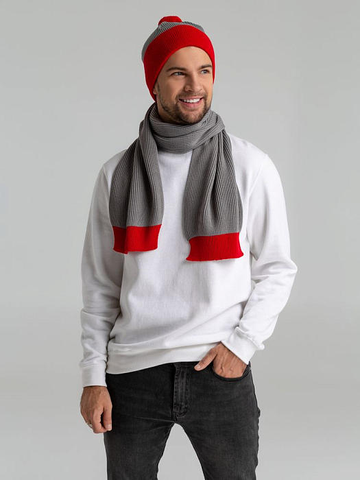 Двухслойный шарф фактурной вязки с контрастной отделкой.