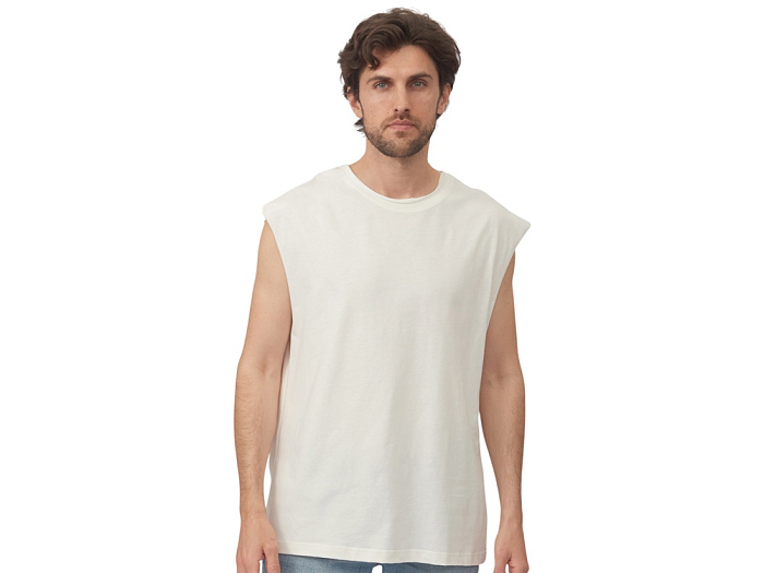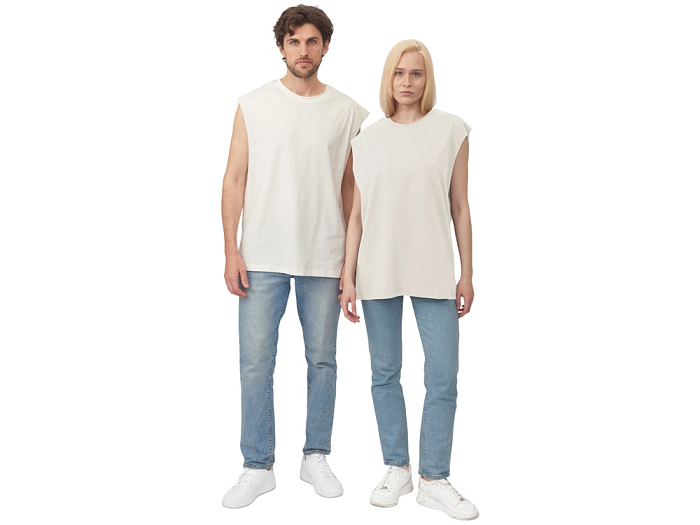 Майка унисекс расширенного силуэта со спущенным плечом, выполнена из плотного джерси 180гр.