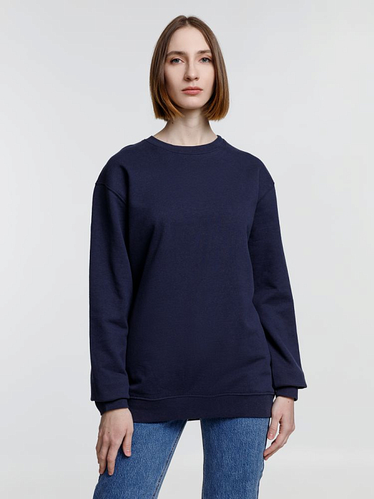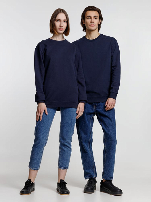 Свитшот унисекс из хлопка и переработанного полиэстера с круглым вырезом и втачным рукавом.