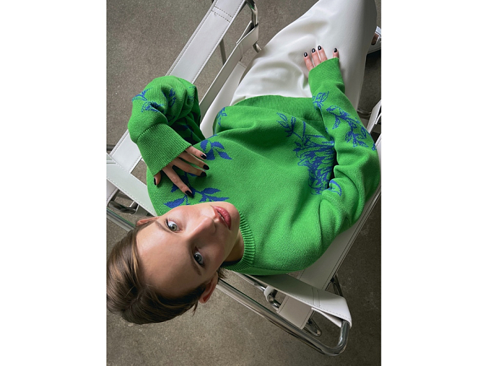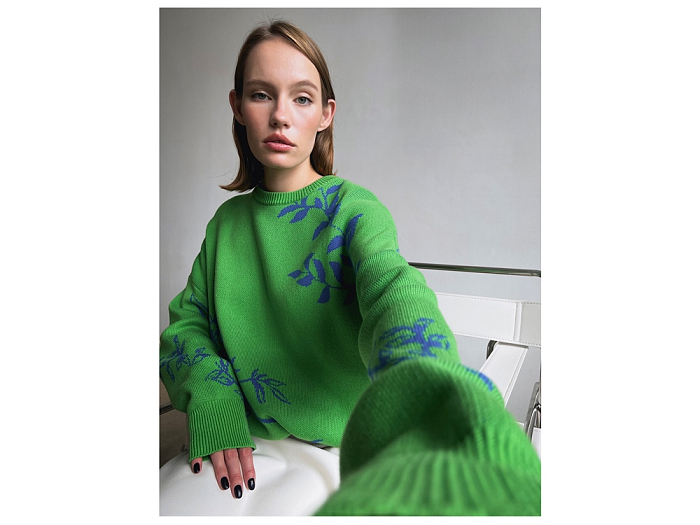 Джемпер свободного кроя из мягкой смесовой пряжи.