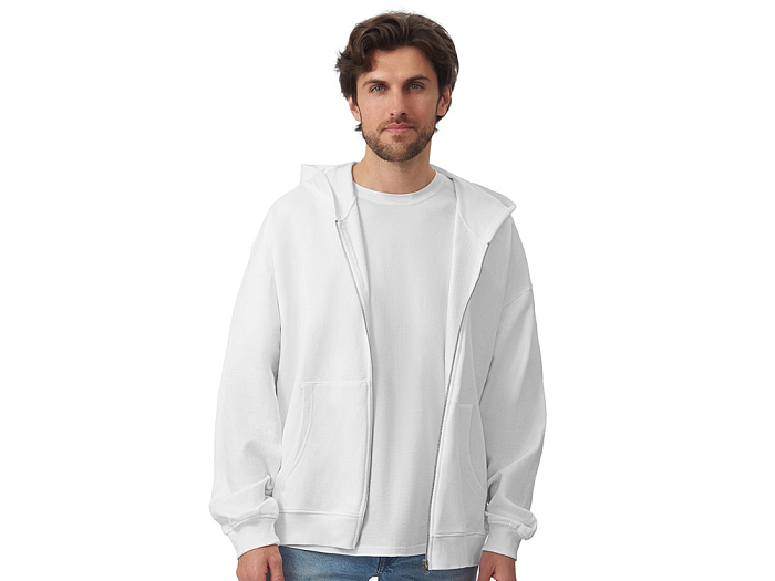 Толстовка на молнии с капюшоном. Риб 2х2 по манжетам и низу изделия.