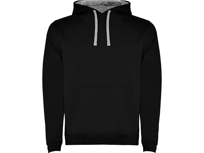 Худи с капюшоном и шнурками. Отделка горловины спинки внутри тесьмой, Риб 1х1 по низу изделия и манжетам. Карман кенгуру.