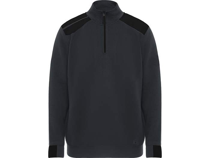 Толстовка с воротом- стойкой на молнии с сочетанием двух цветом. Половина манжет и низ изделия из рибового полотна 1х1. Укрепляющая отстрочка по внутреннему воротнику. Контрастные плечи , детали, молния и манжеты