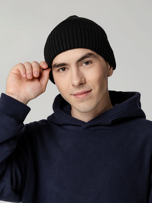 Основное полотно связано резинкой 1x1, отворот — резинкой 2x2.