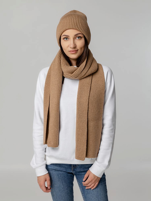 Шапка-бини из полушерстяной пряжи актуальных приглушенных оттенков. Трендовый фасон с удлиненным верхом — для расслабленного повседневного образа.