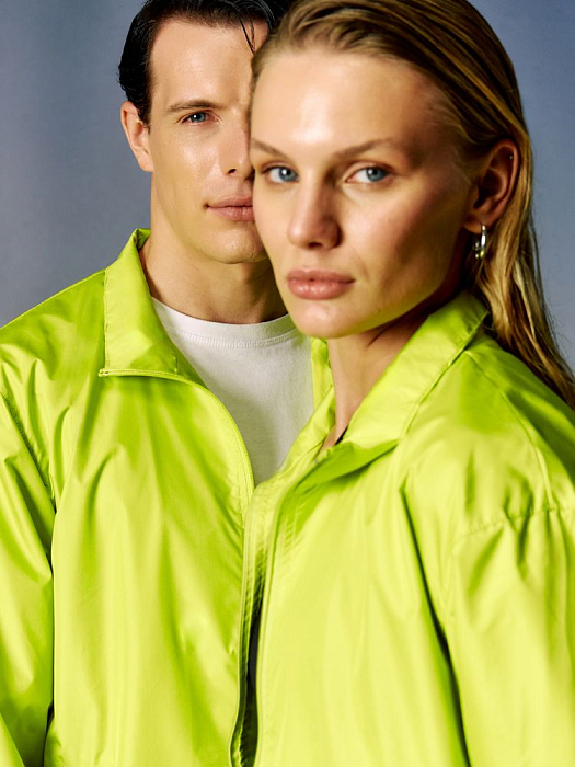 Тонкая гладкая ткань дюспо с притягательным матовым блеском почти бесшумна в использовании и пригодна для большого количества цветов печати. Качественный пошив ветровки добавляет ей презентабельности и гарантирует долгое использование, а яркий цвет привлекает внимание и не выгорает со временем.