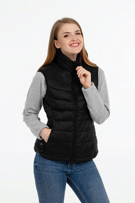 Эргономичный и ультралегкий жилет приталенного силуэта складывается в карман, расположенный внутри на спинке, и превращается в дорожную подушку.