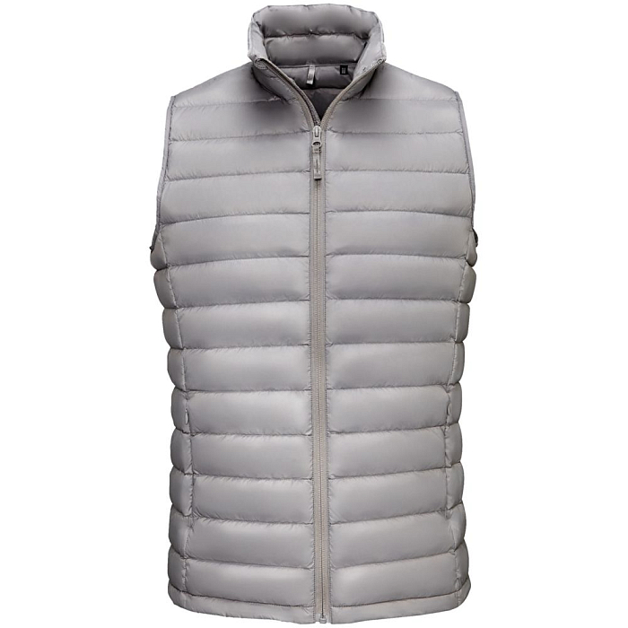 Мужской стеганый жилет облегающего кроя на молнии с воротником-стойкой.