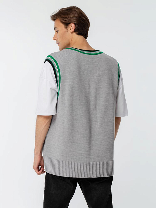 Оверсайз жилет с V-образным вырезом и цветной отделкой.