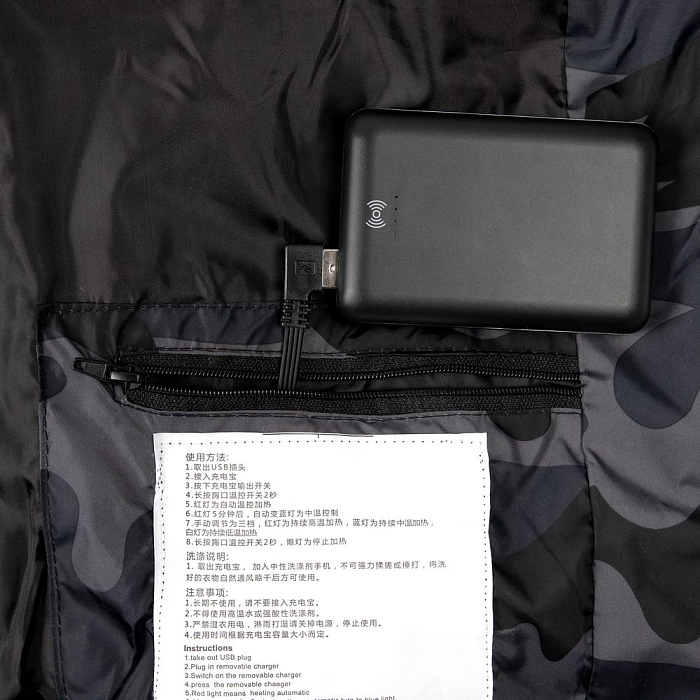 Жилет со встроенным нагревательным элементом из углеродного волокна с девятью зонами нагрева в области спины, шеи и живота. Работает от внешнего аккумулятора (в комплект не входит), подарит ощущение тепла и комфорта в любую погоду.