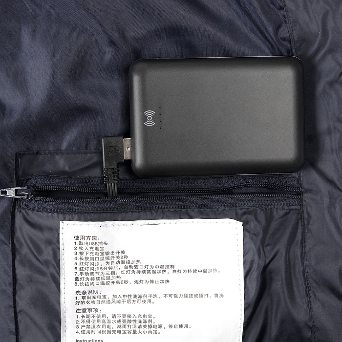 1. Подключите внешний аккумулятор к кабелю во внутреннем кармане куртки.