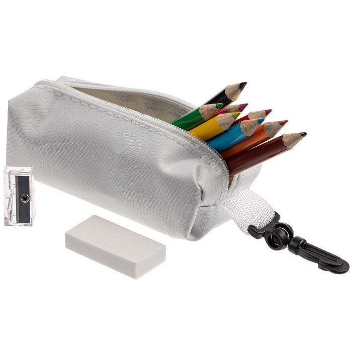 Яркий детский набор с бутылкой для воды, светоотражателем и цветными карандашами в пенале.