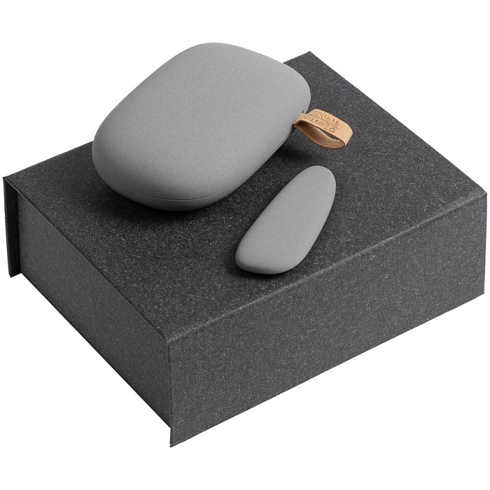 В набор Causeway входят флешка и аккумулятор Pebble, отличающиеся стильным дизайном и эргономичностью формы. Сочетание плавности линий с шероховатостью поверхности напоминает природный камень и навевает мысли о море. Набор поставляется в черной коробке, идеально подходящей для нанесения логотипа.