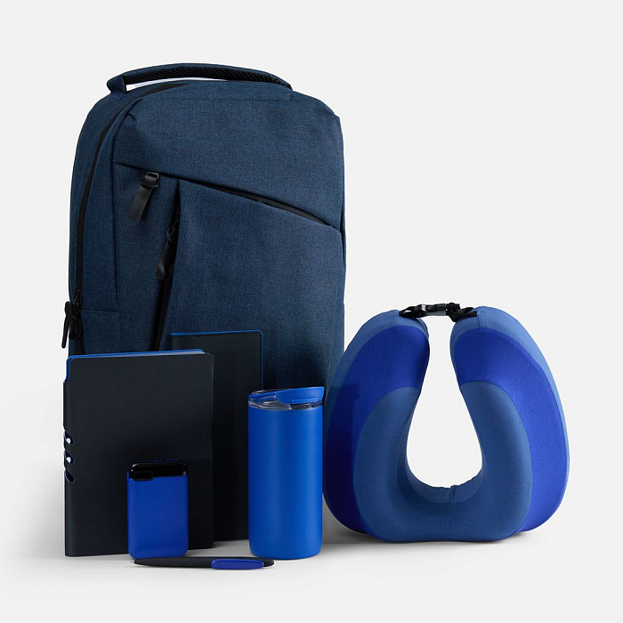 Вместительный рюкзак позволяет с легкостью захватить с собой все необходимое в дорогу. Комфортная подушка гарантирует максимальный комфорт и поддержку шеи во время долгой поездки или перелета, а с дорожным органайзером все важные документы будут в исключительном порядке. Термостакан позволит утолить жажду или согреться, а аккумулятор обеспечит бесперебойную работу всех устройств. Войти в рабочее русло и спланировать все дела даже на ходу позволят ежедневник и ручка, которые всегда будут под рукой.