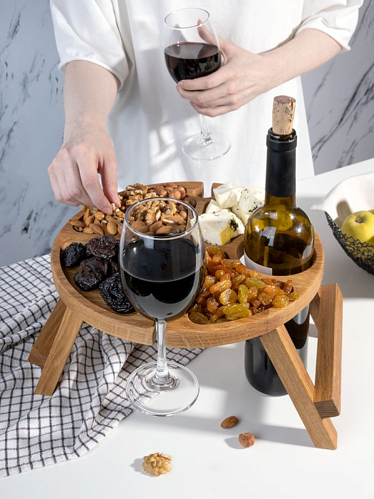 Удобные углубления для двух бокалов и специальное место для бутылки просто созданы для безмятежного наслаждения любимыми напитками. Продуманные отсеки для изысканных закусок позволят добавить изюминку любому ужину и превратить его в настоящий гастрономический праздник!