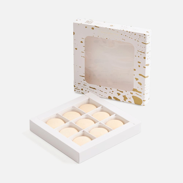 Стоимость доставки по Санкт-Петербургу и Москве включена в цену. Доставка в другие регионы рассчитывается и оплачивается отдельно.В набор входят 9 пирожных макарон. Мы предлагаем бесплатно добавить на них индивидуальные пожелания или логотип. Для печати будет использована недекорированная (белая) миндальная меренга, вкус самого макарона от этого не изменится.