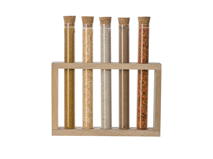 Специи идут в комплекте с миниатюрной и стильной подставкой. Благодаря наличию зон под нанесение, подаренный набор будет служить отличными напоминанием о дарителе.