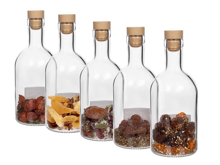 В коллекции набора, вдохновленного русскими сказками и самой природой, 5 бутылок с разными травами, сухофруктами и специями для приготовления сладких или терпких настоек. Одни подействуют как настоящий бальзам на душу, в то время как другие — взбодрят и придадут сил.