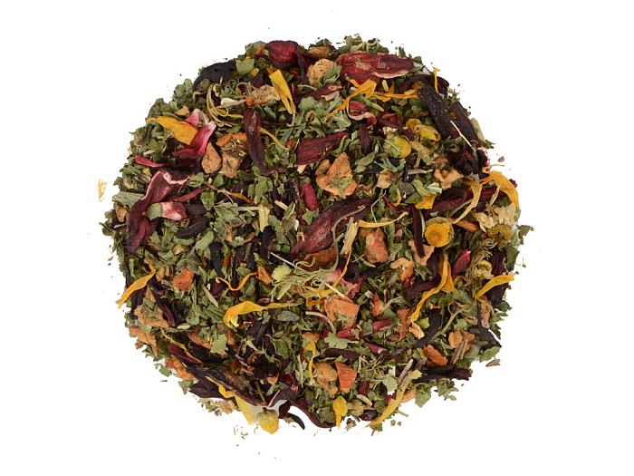 Ягодно-травяной сбор с добавлением гибискуса. Можно употреблять в горячем виде или использовать в качестве основы для приготовления чая со льдом и различных коктейлей. Готовый напиток обладает расслабляющим и успокаивающим эффектом