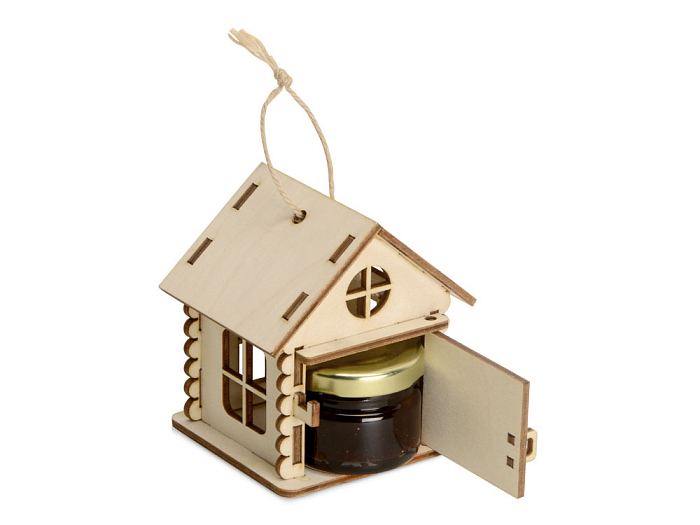 В домике открывается дверца, и в него можно поместить небольшую баночку с медом или вареньем. Оригинальная конструкция сувенира украсит любой интерьер, как в офисе, так и в квартире. Подарочная упаковка “Домик” позволит вам сделать оригинальный и запоминающийся подарок для руководителя или коллеги.