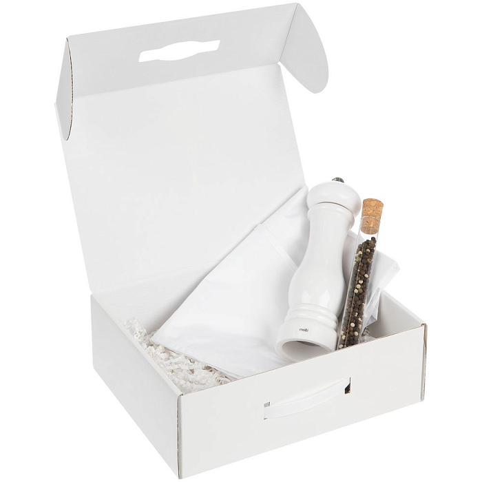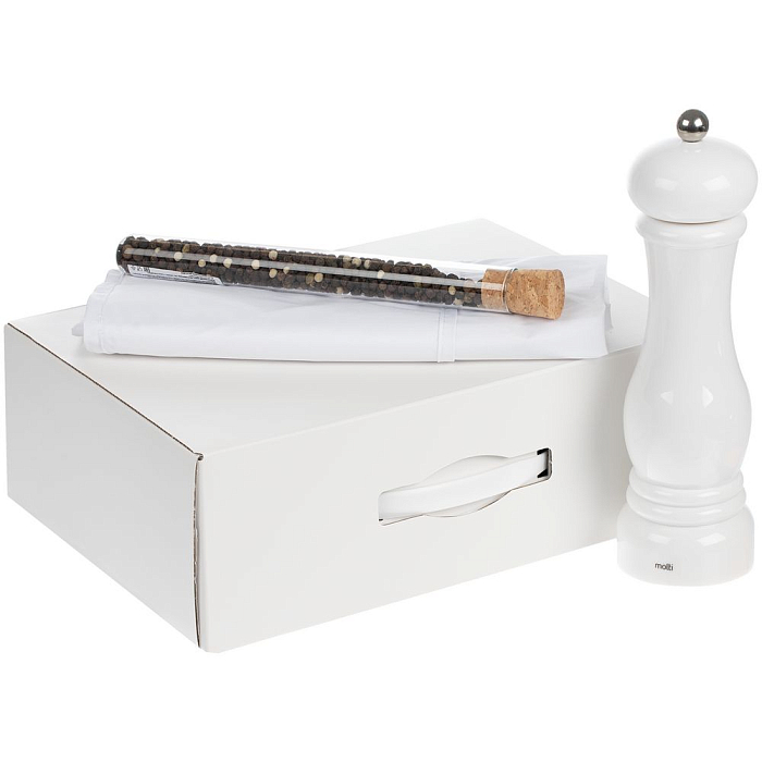 • Размеры мельница: диаметр 6,1 см, высота 21 см; приправа: высота 20,2 см, диаметр 2,1 см; фартук 67,5x60,5 см; коробка 26x19x9 см