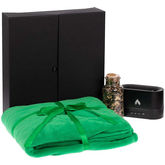 Мягкий флисовый плед, черный чай с медовыми гранулами, корицей и кусочками имбиря, а также увлажнитель воздуха с имитацией пламени — все самое необходимое для создания уюта в доме в подарочном наборе Housewarming.