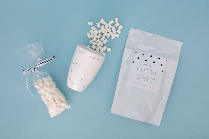 Порадуйте клиентов минималистичным подарком с кружкой ручной работы и авторским принтом в виде случайных капель чернил. В такую кружку особенно вкусно налить какао с маршмелоу.
