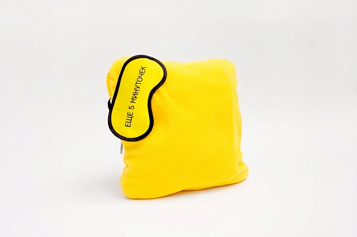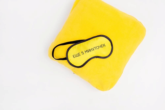 5 минут, 5 минут... Самые сладкие 5 минут - это минуты до подъема. Чтобы подсластить ранний подъем - уютный плед желтого цвета, как солнышко, который складывается в чехол - подушку. И маска для сна, чтобы домочадцы случайно не разбудили раньше.