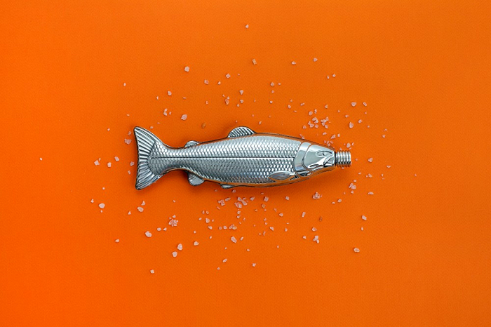 • Фляжка в виде рыбы, внутри морская розовая соль