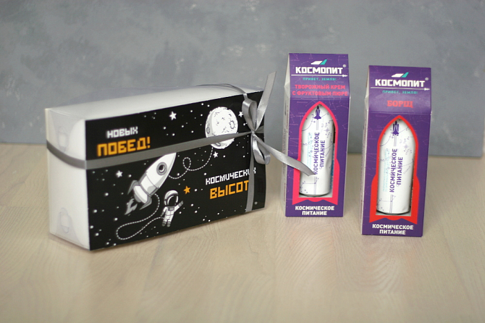 • 2 тюбика с космическим питанием - борщ и десерт (в набор также входит подогрев для питания)