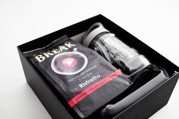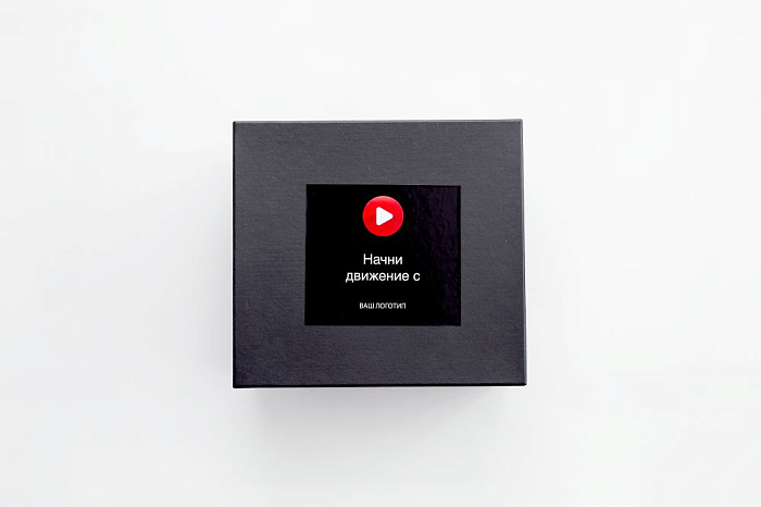 • Черная коробка крышка-дно с брендированной наклейкой