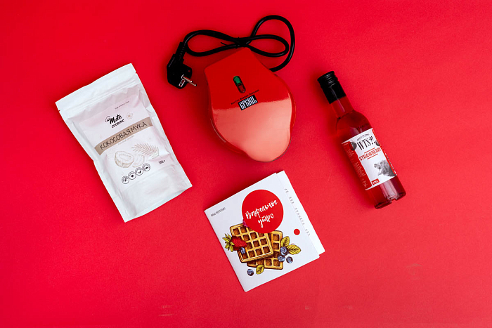 В наборе есть открытка с простыми рецептами - которая поможет начать знакомство с вафельницей.
