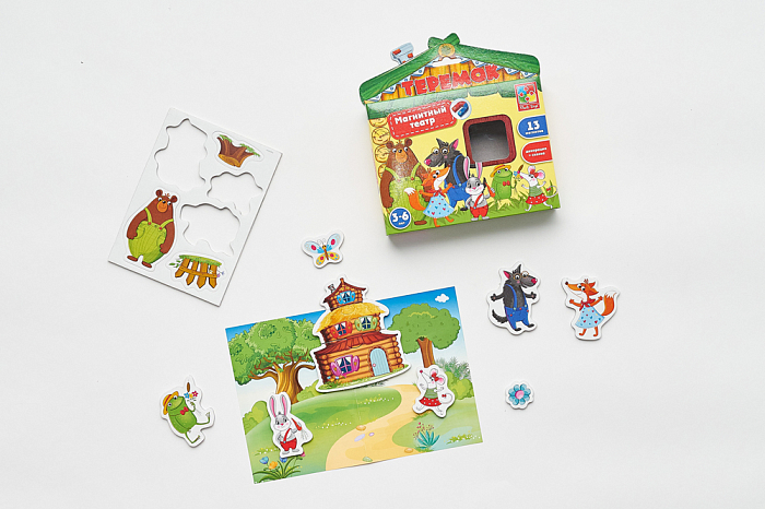 Всеми любимая сказка "Теремок" в виде магнитного театра поможет воссоздать театральные постановки у вас дома. Игра содержит специальную декорацию, которая перенесет ребенка в увлекательный мир сказки. Объемные магниты легко крепятся к холодильнику или магнитной доске. А, поскольку, детская фантазия не имеет границ, можно создавать новые истории с уже знакомыми персонажами.
