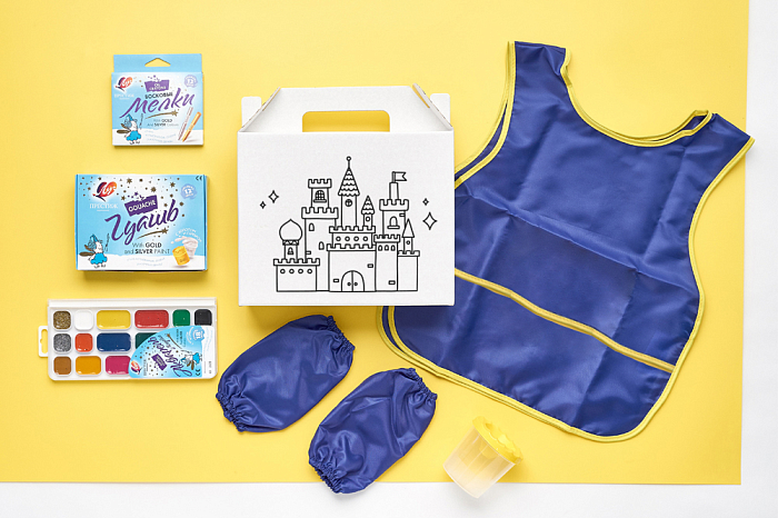 Отличная идея - дать ребенку почувствовать себя в роли юного художника. Для этого в наборе есть все необходимое: кисти, краски, мелки и специальный фартук, чтобы не измазаться в процессе создания шедевра.