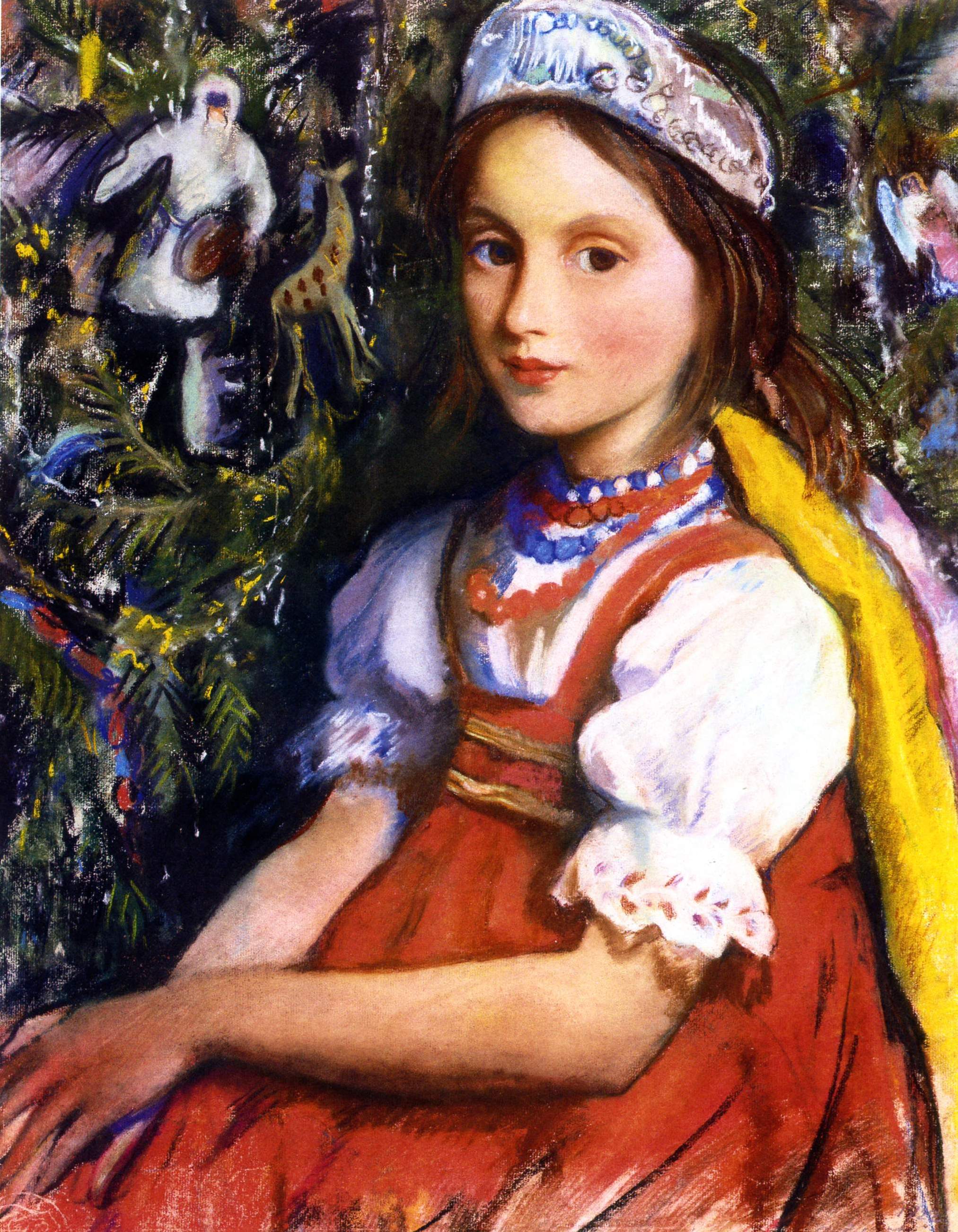 Зинаида Серебрякова, выставка работ которой с успехом проходит в Третьяковской галерее, родилась в одной из наиболее прославленных искусством семей Бенуа-Лансере. Следуя семейным традициям, Александр Бенуа, дядя художницы, ежегодно устраивал детские ёлки. Специально к празднику шились карнавальные костюмы, готовились выступления детей и взрослых. А Серебрякова запечатлела эти праздничные мгновения в портретах дочерей у рождественской ёлки.